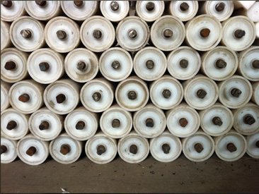 七、使用壽命長,抗沖擊性能很好,壽命是金屬托輥的3-5倍。